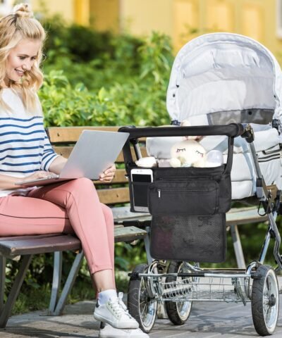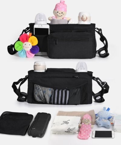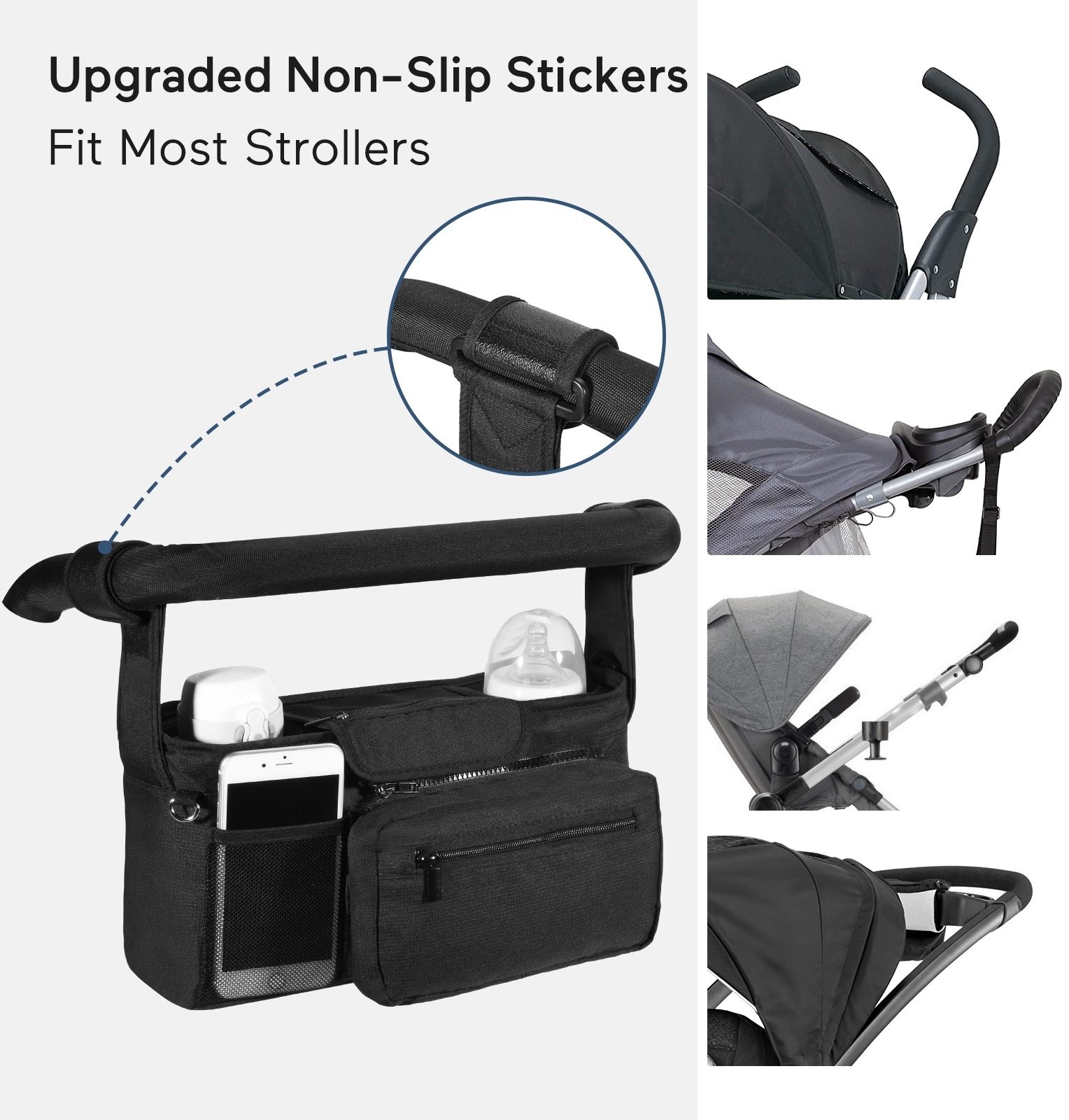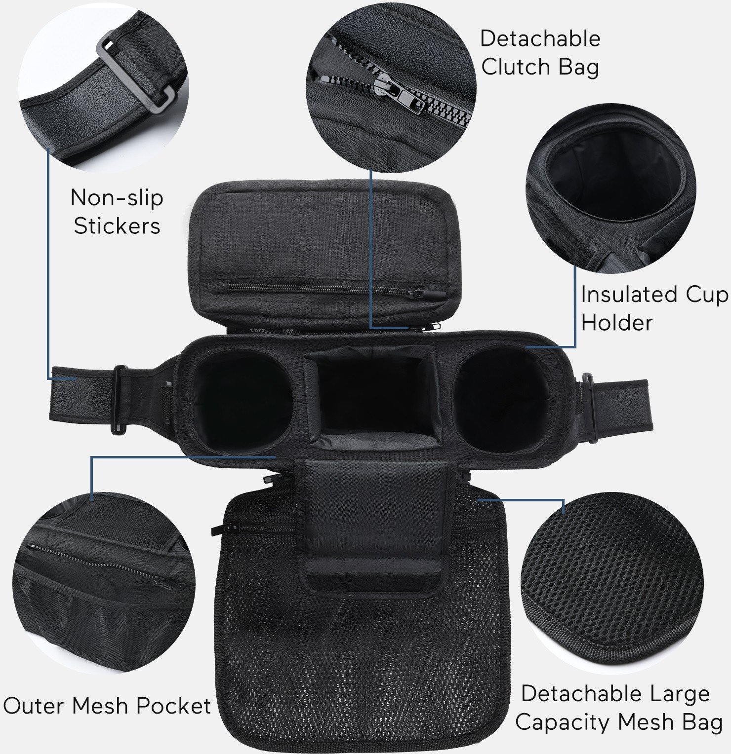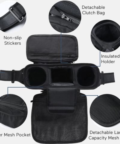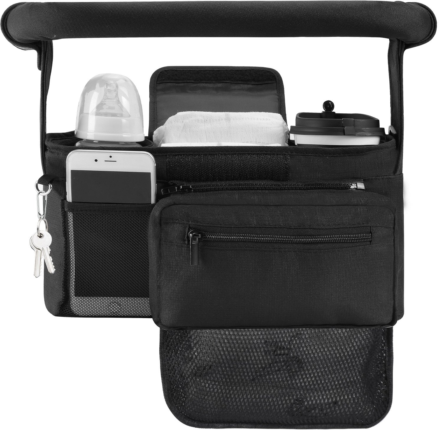Organizer strukturiert für kinderwagen bietet ein geräumiges design und multifunktions mit getränkehalter isoliert, slots für telefon und eine abnehmbare tasche für einfachen zugriff auf das wesentliche. Seine klettverschlüssen verstellbare sorgen für kompatibilität mit den meisten kinderwagen, während das material leicht zu reinigen die wartung vereinfacht.