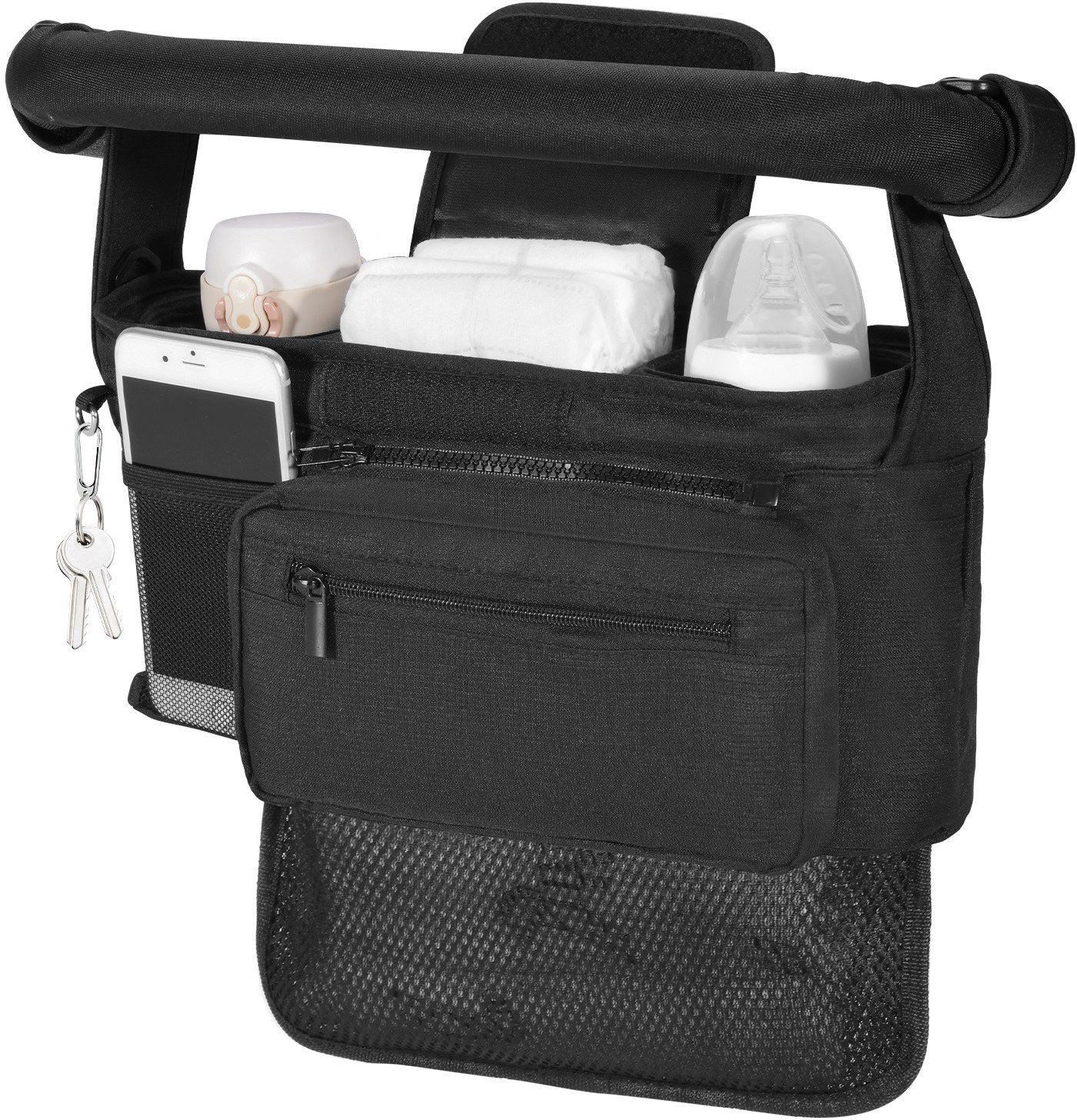 Entworfen mit eine große kapazität stauraum, dieser organizer bietet genügend platz für alle ihre wesentlichen kinderwagen. Enthält getränkehalter, ablagefächer für telefon, taschen, brieftaschen und andere fächer sicher für ihre utensilien.