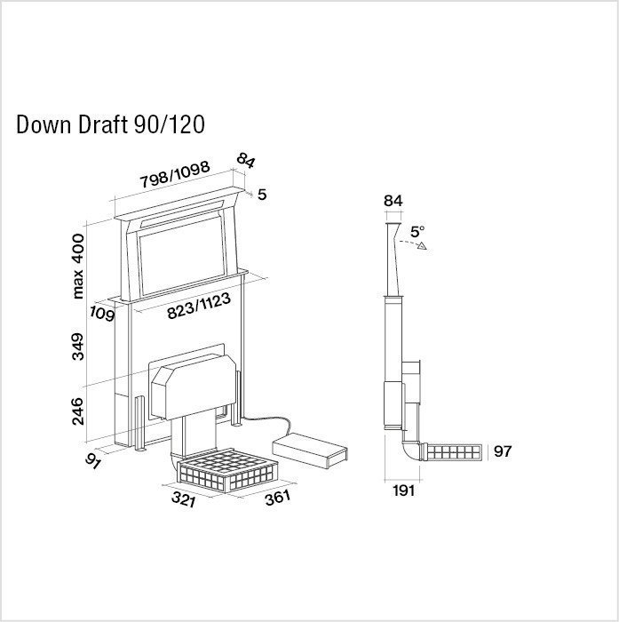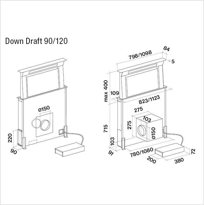 - h x b x t 715 – 1115 x 823 x 91 mm