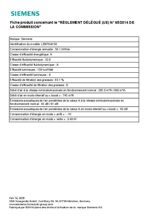 - (A) re1pW Nach EN 61591 und EN/ IEC 60704-2-13, ihr gerät kann erreichen die folgenden werte im modus » extraktion : Geschwindigkeit 1 : anteil der extraktion 285 m3 / h; geräuschpegel 45 DB (A) re1pW Geschwindigkeit 2 : anteil der extraktion 410 m3 / h; geräuschpegel 51 DB (A) re1pW Geschwindigkeit 3 : anteil der extraktion 600 m3 / h; stufe sinore 61 DB (A) re1pW intensivstufe 1: ebene extraktion 745 m3 / h; lautstärke 65 DB (A) re1pW