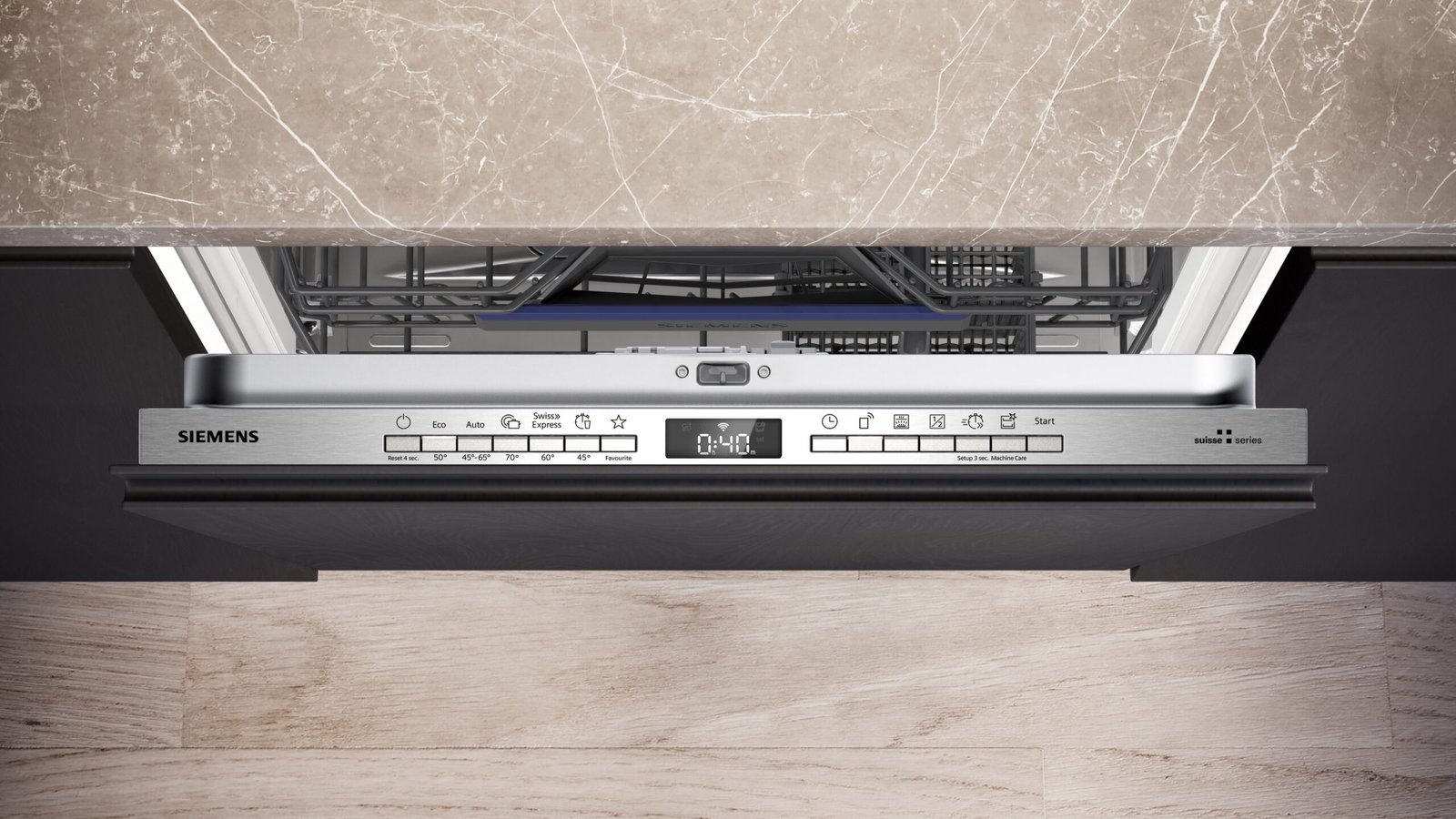 - 6 Programme: Eco 50 °C, Auto 45-65 °C, Intensiv 70 °C, Swiss-Express 60 °C, Speed 45 °C, Favorit