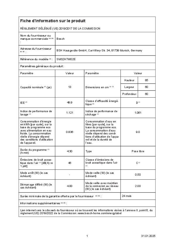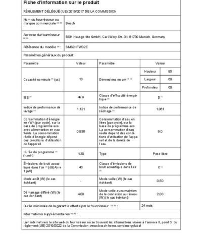 - Énergie2 / Eau3: 84 kWh / 9 liter
