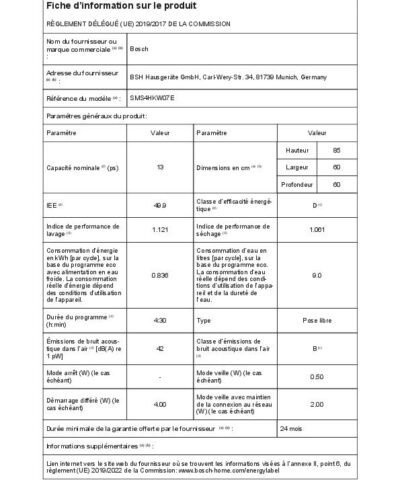 - Énergie2 / Eau3: 84 kWh / 9 liter