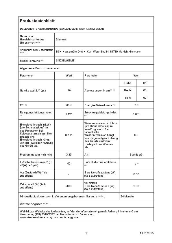 Freistehender Geschirrspüler Siemens – SN23EW03ME