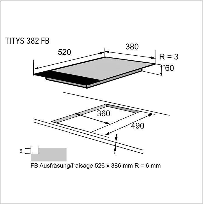 - Ausschnitt: H x L x P 60 x 360 x 490 mm