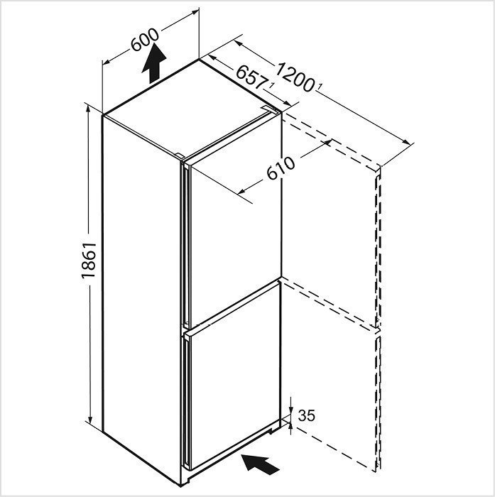 - Abmessungen: H x L x P 1861 x 600 x 657 mm
