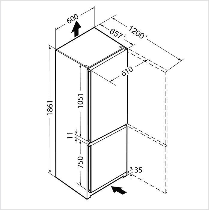 - Abmessungen: H x L x P 1861 x 600 x 657 mm