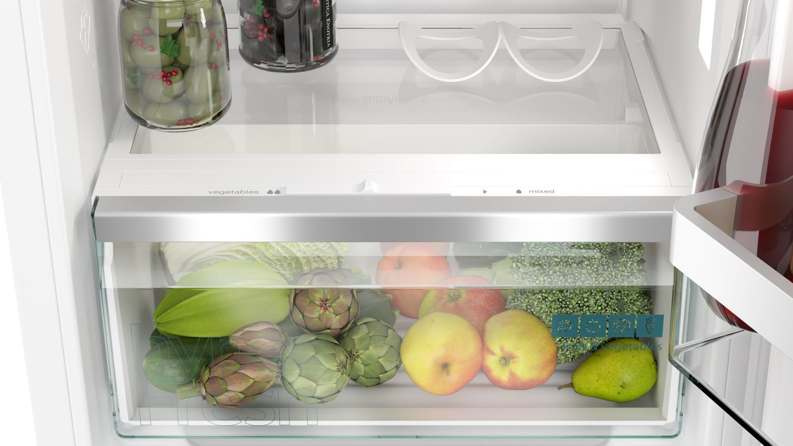 - 1 hyperFresh-fach mit anpassung der feuchtigkeit – hält obst und gemüse länger frisch.