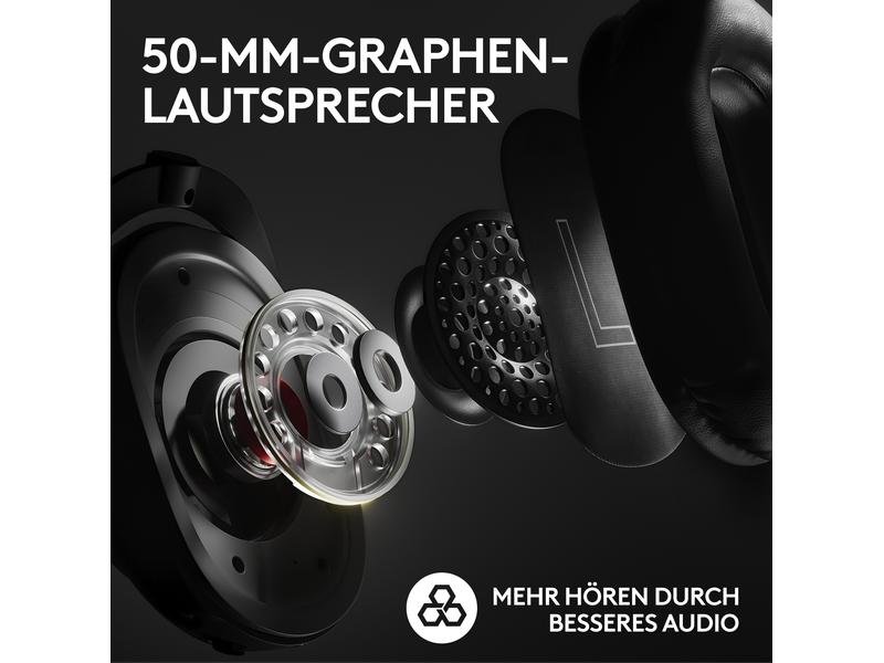- Kabellose Anbindung über 2.4 GHz «LIGHTSPEED»-USB-Funkempfänger mit bis zu 30 m Reichweite – Wahlweise Verbindung über Bluetooth oder 3.5 mm Audiokabel