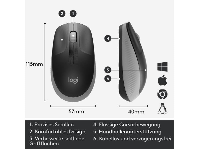 Logitech Maus M190 Grau/Schwarz, kabellos