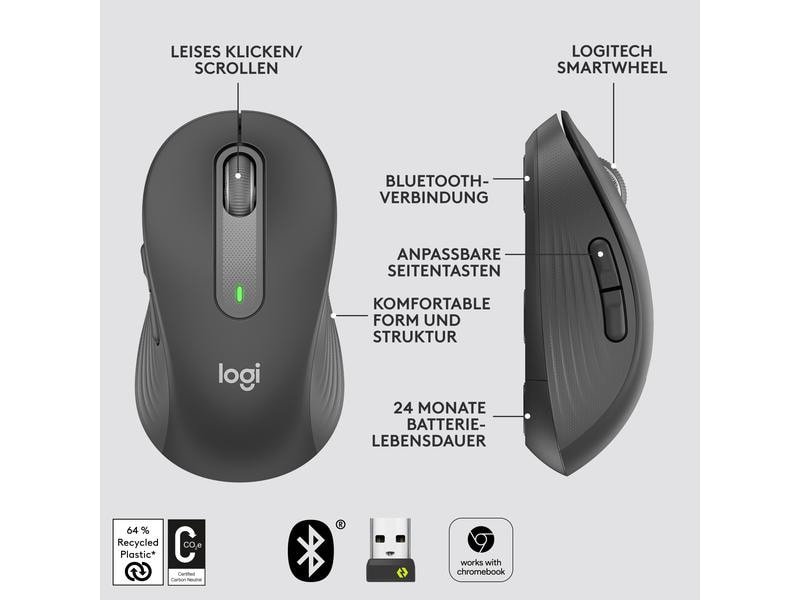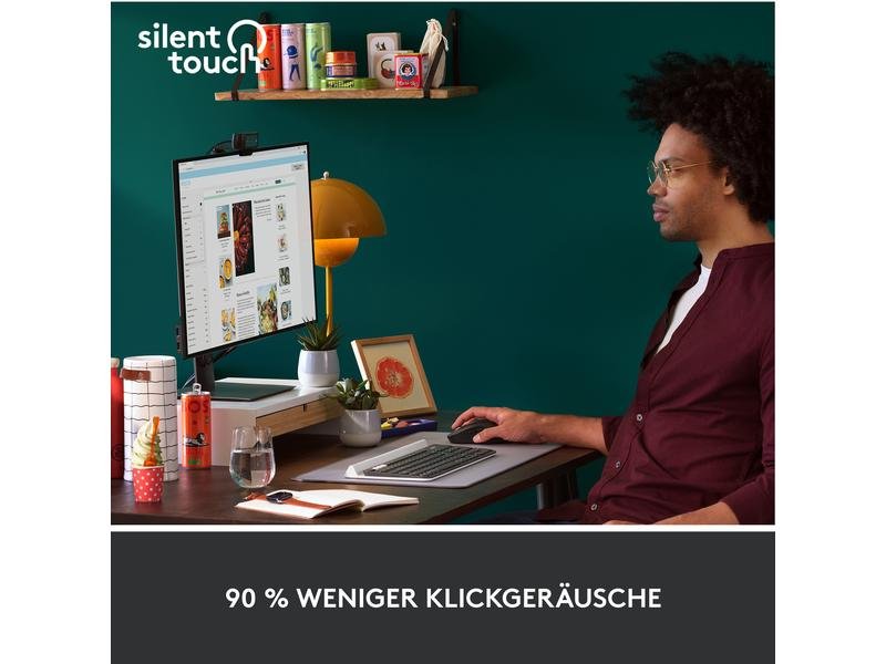 - «Logitech SilentTouch»-Technologie: reduziert 90% der Klickgeräusche und sorgt so für eine bessere, leisere Umgebung