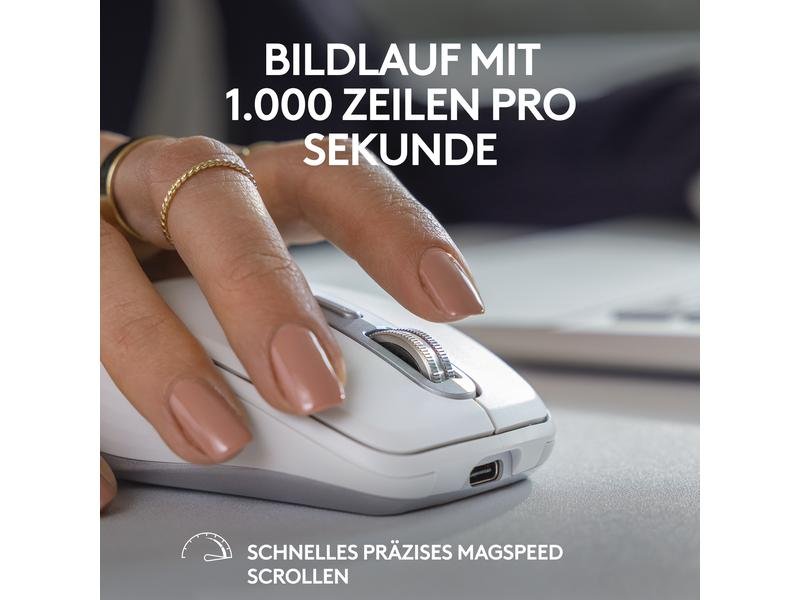 Das Scrollrad verfügt über einen Präzisionsmodus und einen einen frei drehbaren Modus. Im frei drehbaren Modus scrollen Sie mit MagSpeed schnell und flüssig mit bis zu 1000 Zeilen in einer Sekunde durch lange Webseiten und Dokumente und können jederzeit sofort anhalten. Im «Click-to-Click»-Modus navigieren Sie präzise durch Tabellen, Wiedergabelisten und Fotoalben.