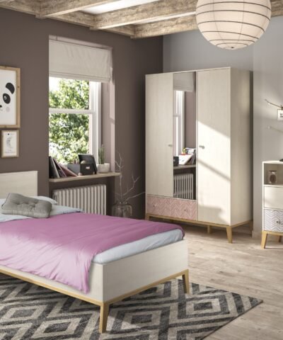 Einzelbett ALIK Kastanie lasiert Weiß 129×210
