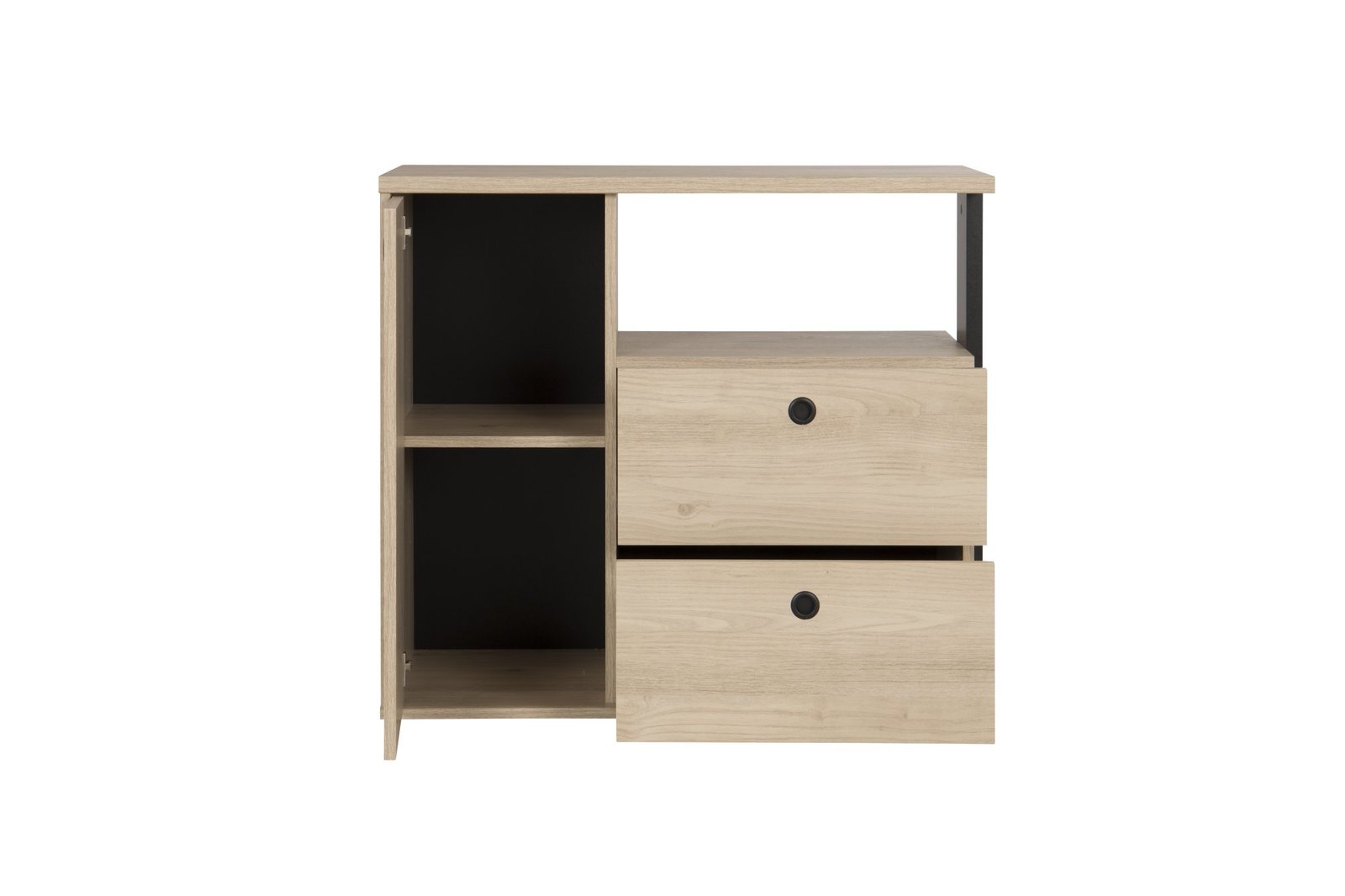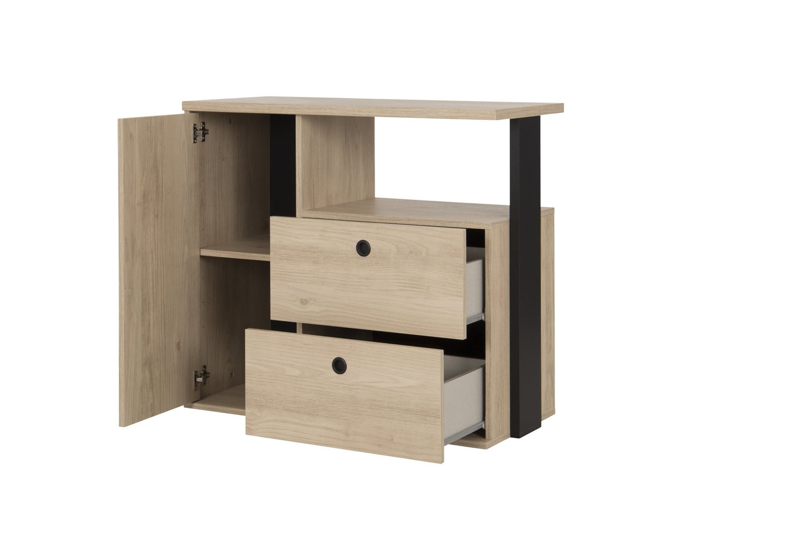 Kommode mit 1 tür mit 2 schubladen 1 nische DUPLEX Kastanie natürliche Beige 90×40 – Möbel hergestellt in Deutschland . Höhe 80cm zur optimierung des stauraums . Über der kommode und vertikalen schwarz dicke 25mm . 1 einlegeboden geliefert, der hinter der tür . Öffnung durch knöpfe in schwarzem ABS-kunststoff . . . .