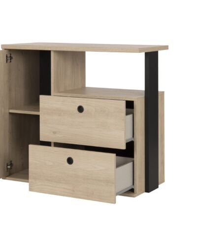 Kommode mit 1 tür mit 2 schubladen 1 nische DUPLEX Kastanie natürliche Beige 90×40