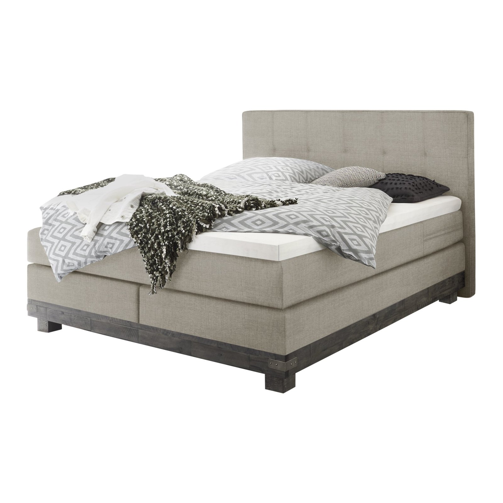 Boxspring bett Boston Hasena 140×200 cm Beige / Grau