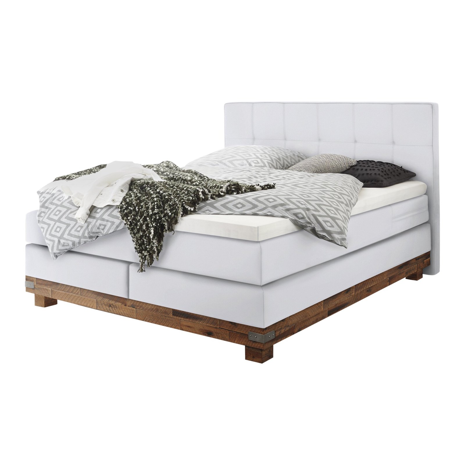 Boxspring bett Boston Hasena 140×200 cm, Weiß / Braun