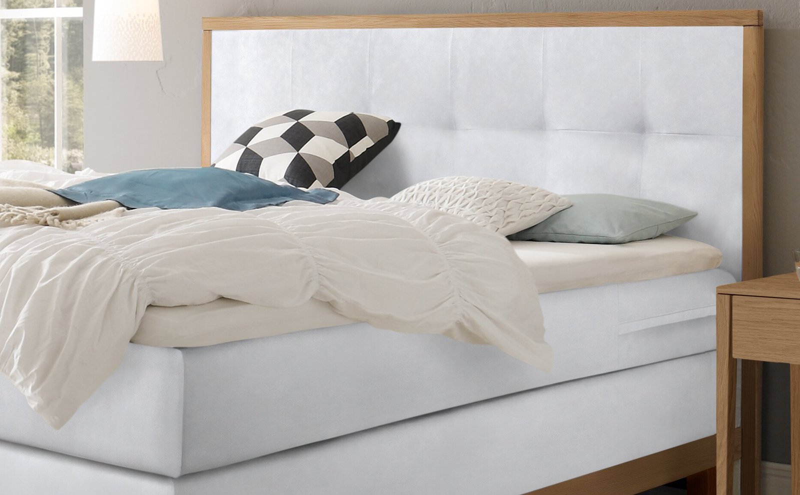 Boxspring bett Chalet Hasena 160×200 cm, Weiß / Braun
