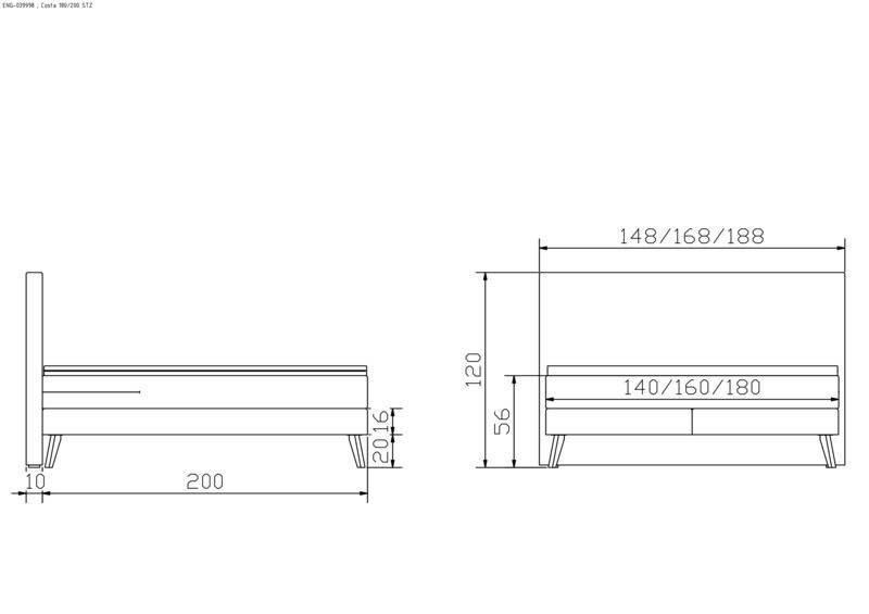 Boxspring bett Costa Hasena 160×200 cm Grau / Braun