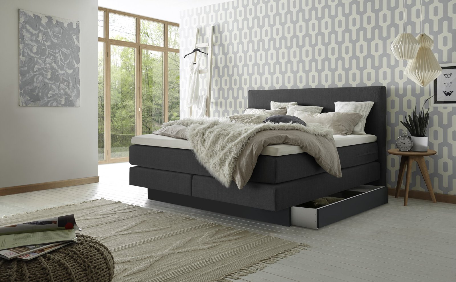 Boxspring bett inkl. stauraum Denver Hasena 160×200 cm Anthrazit