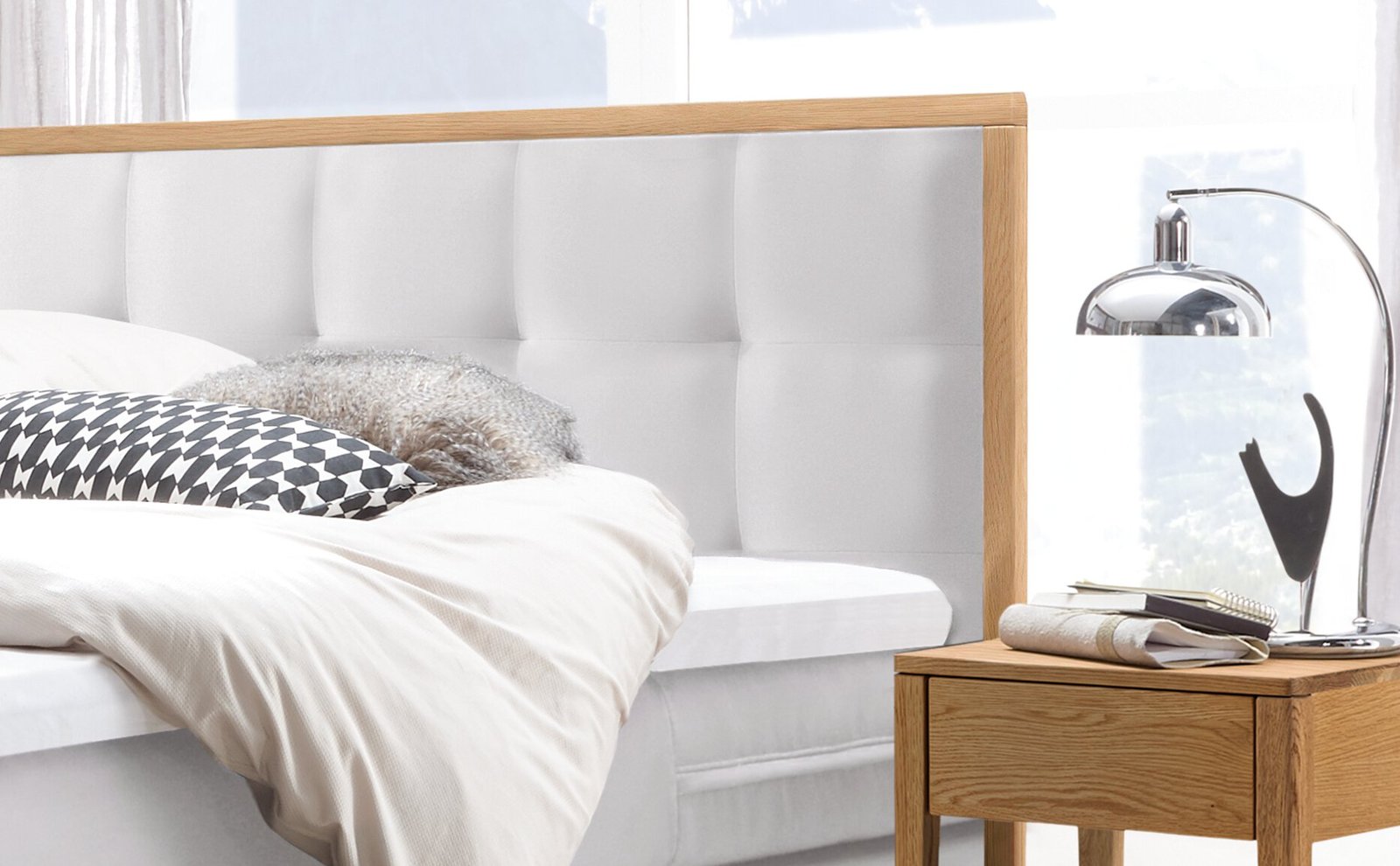 Boxspring bett inkl. stauraum Ottawa Hasena 160×200 cm, Weiß / Braun