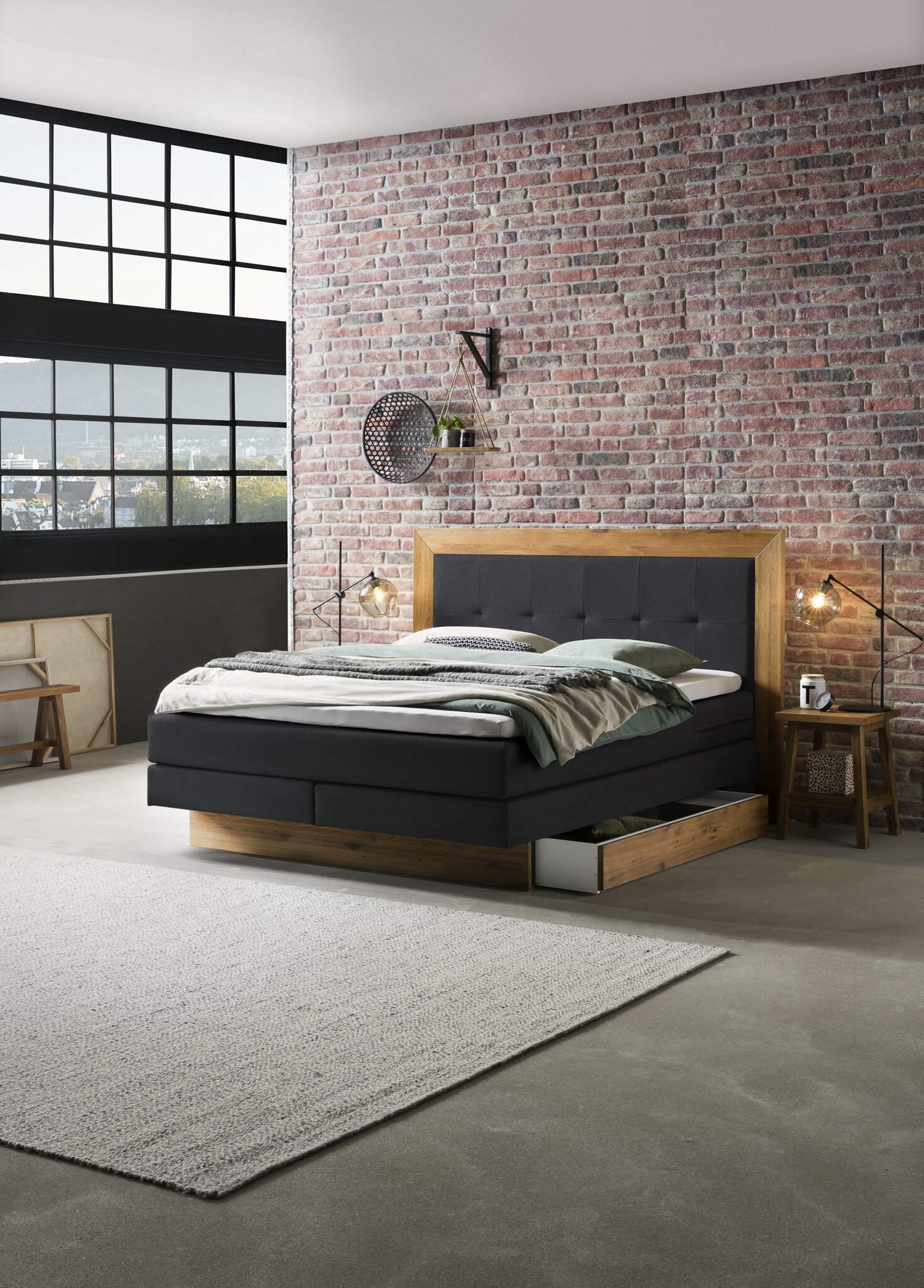 Boxspring bett inkl. stauraum Texas Hasena 140×200 cm Anthrazit / Braun