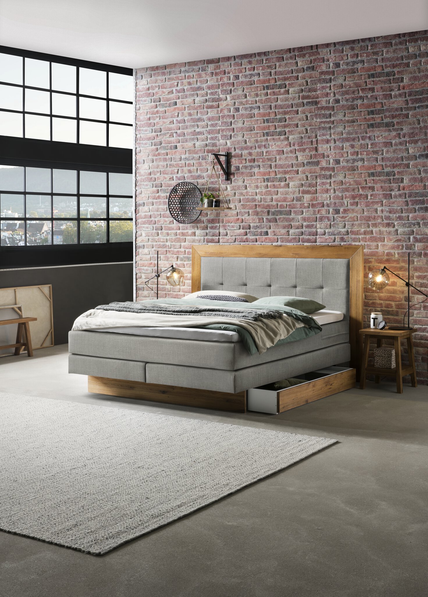 Boxspring bett inkl. stauraum Texas Hasena 180×200 cm Grau / Braun