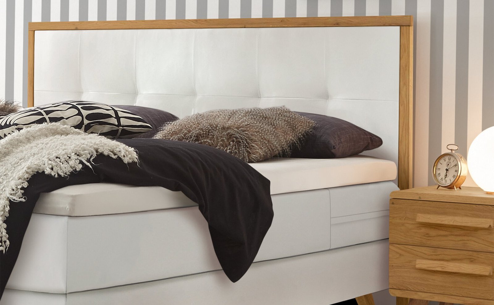 Boxspring bett Nordic Hasena 160×200 cm, Weiß / Braun