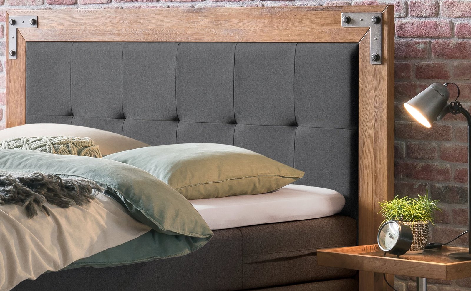 Boxspring bett Oakland Hasena 160×200 cm Grau / Anthrazit / Braun