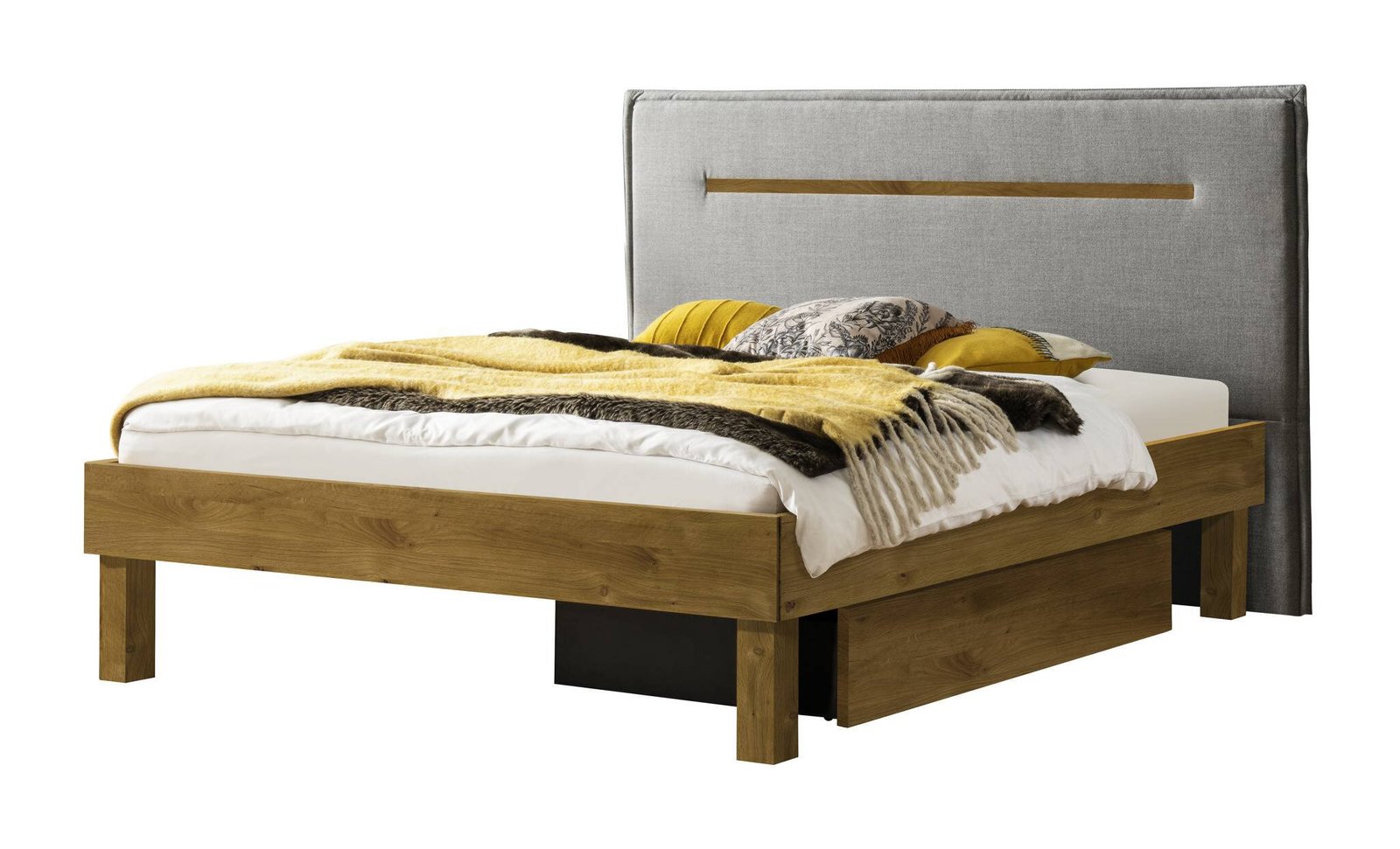 Bett Anna Hasena Eiche massivholz-390-Alpina lightgrey 160×200 cm Grau / Braun