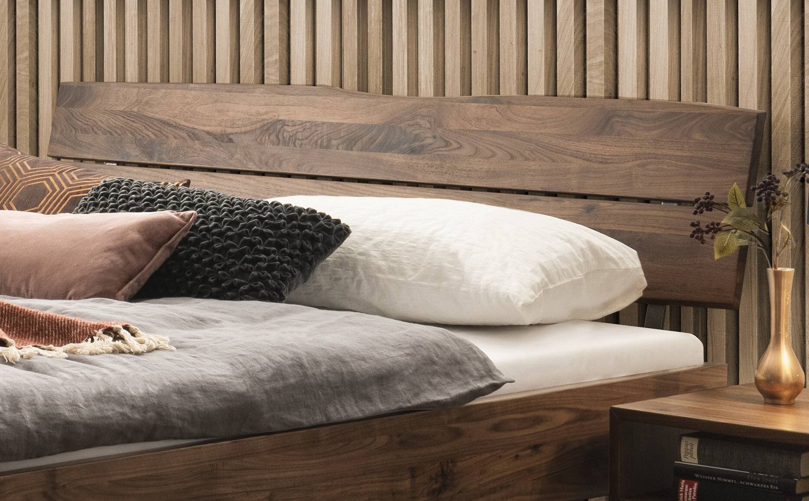 Bett Arezzo Hasena Nussbaum massiv 200×200 cm Anthrazit / Braun