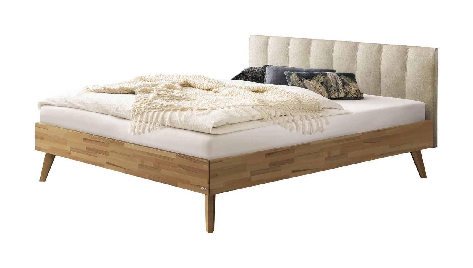 Bett Elia Hasena Buche herz rot massiv aus holz 327-Pepe beige 180×200 cm Beige / Braun