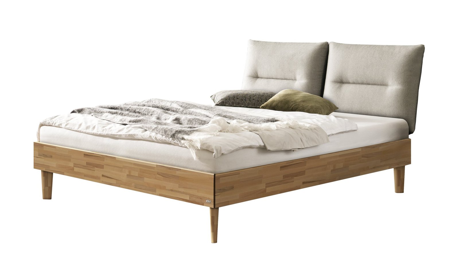 Bett Emilia Hasena Buche herz rot massiv aus holz 730-Cyclo cream 140×200 cm, Weiß / Braun