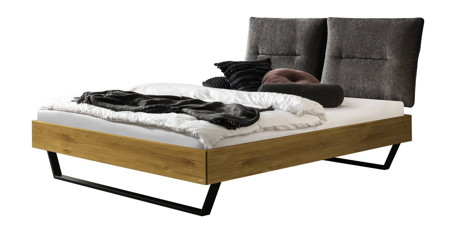 Bett Totti Hasena Eiche massivholz-751-Fusio anthracit 180×200 cm Anthrazit / Braun