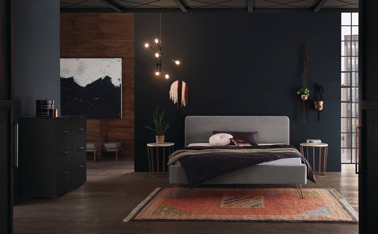Die dunklen möbel sind sowohl edle als auch entspannt sind. Sie bringen eine stilvolle atmosphäre und würde. Die möbel in diesem dunkelgrauen tief und gleichmäßig, und sind immer etwas besonderes und ziehen alle blicke auf sich. Dieses modell ist in buche massiv, mit lack bedeckt. Buche holz ist schwer und sehr hart werden kann im vergleich zu der eiche.