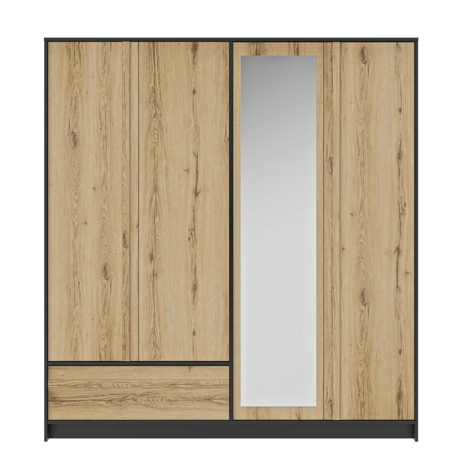 Schrank 4-türig, 1 schublade – Eiche Helvezia Braun – MIMIZAN