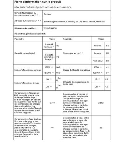Lave-linge sèche-linge Encastrable – Siemens iQ500 WK14D543CH