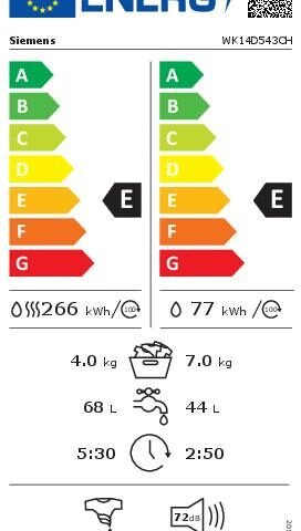- Classe d’efficacité énergétique lavage et séchage¹: E