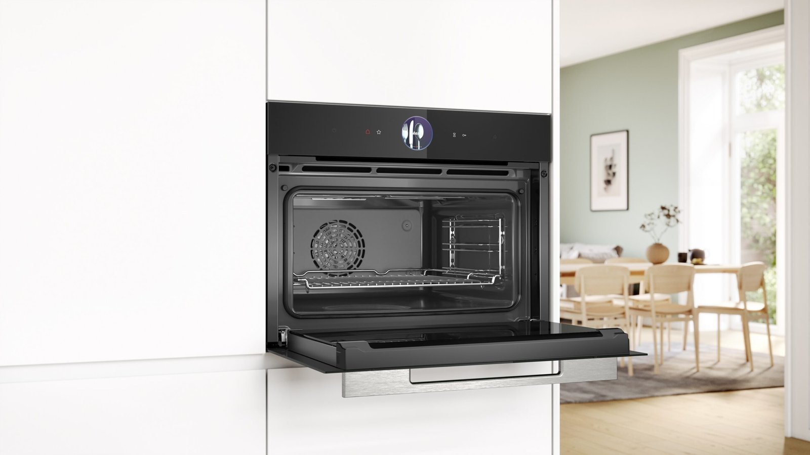 - Four à vapeur compact avec 21 modes de cuisson: Air pulsé-4D, Convection naturelle, Gril air pulsé, Gril grande surface, Gril petite surface, Position pizza, Chaleur de sole, Cuire doucement, Préchauffer, Maintenir au chaud, Air pulsé doux, Chaleur voûte/sole doucement, Vapeur, Régénérer, fermenter, Décongélation, Hot air grilling, warm, Air pulsé 4D + vapeur, Conventional heat