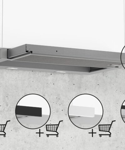 Hotte aspirante à bandeau plat d’une forte puissance pour un montage très discret dans un placard suspendu.