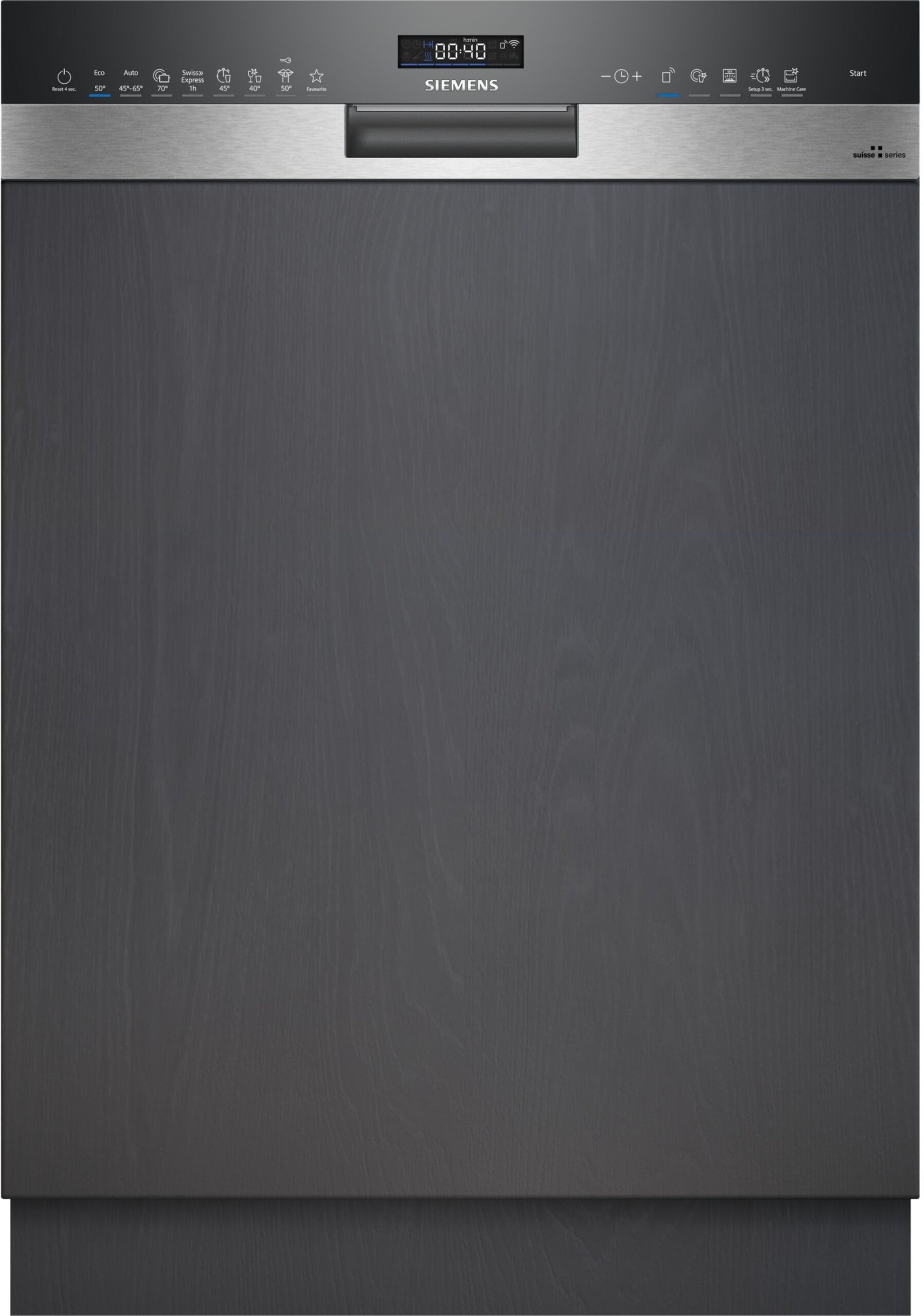 - 8 Programmes: Eco 50 °C, Auto, Intensif 70 °C, Swiss Express, Speed, brilliantShine 40 °C, Silence 50 °C