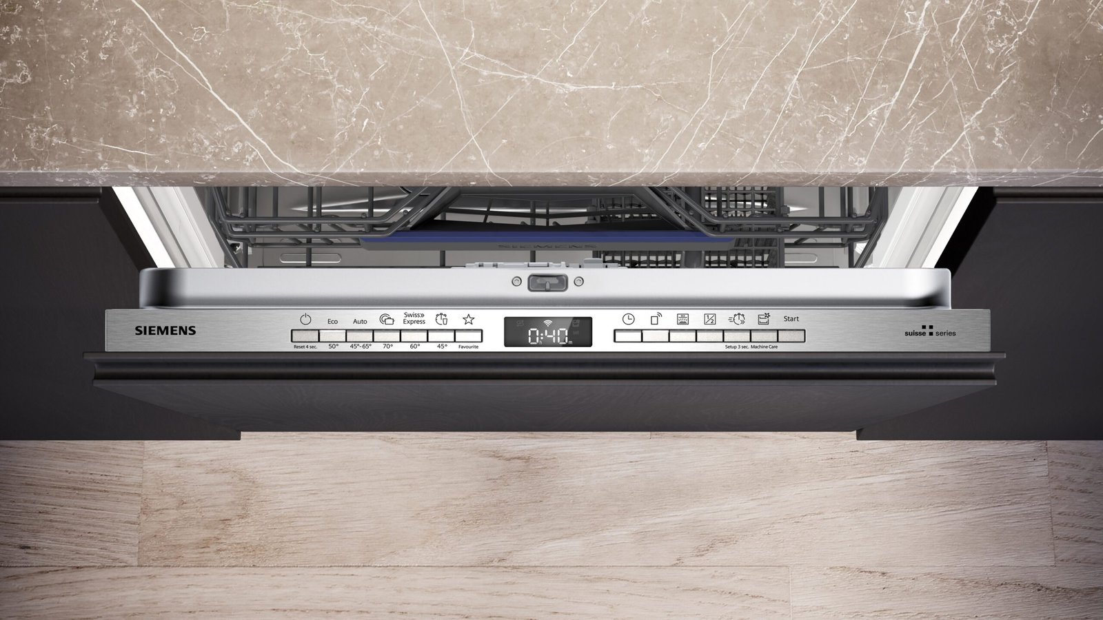 - 6 Programmes: Eco 50 °C, Auto 45-65 °C, Intensif 70 °C, Swiss Express 60 °C, Speed 45 °C, Favorit