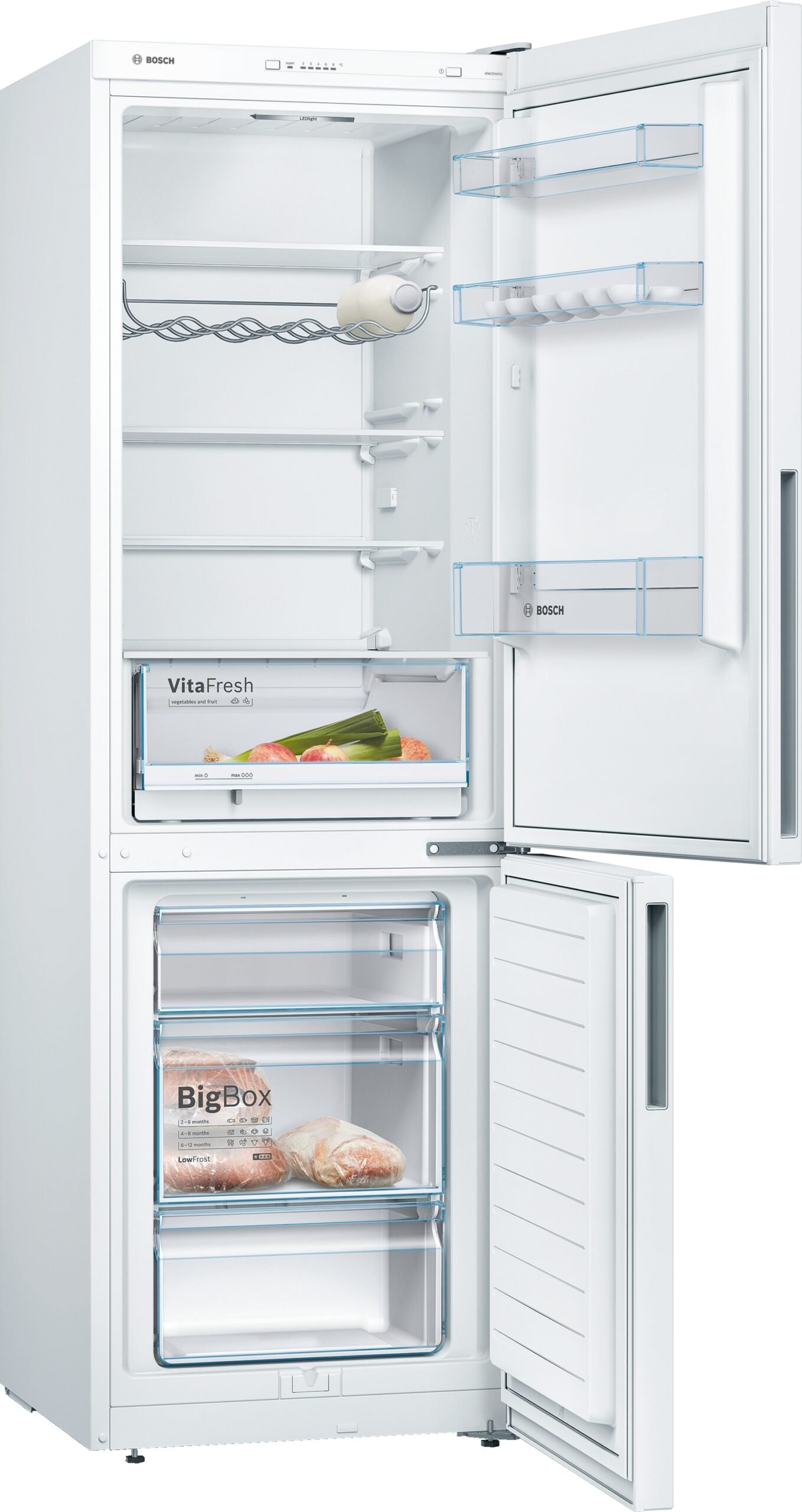 Étiquettes : blanc, Combiné réfrigérateur-congélateur Pose libre (Série 4) Blanc Bosch KGV36VWEA, KGV36VWEA