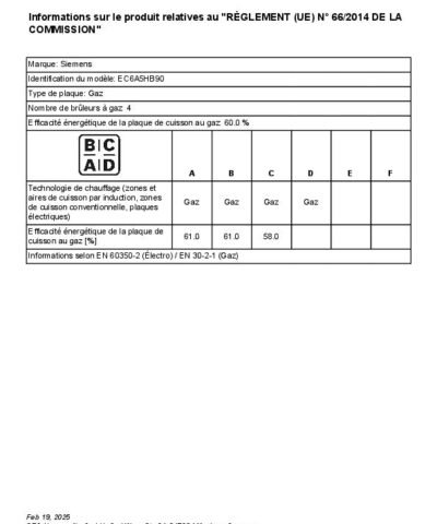Table de cuisson à gaz Encastrable Acier inox – Siemens EC6A5HB90