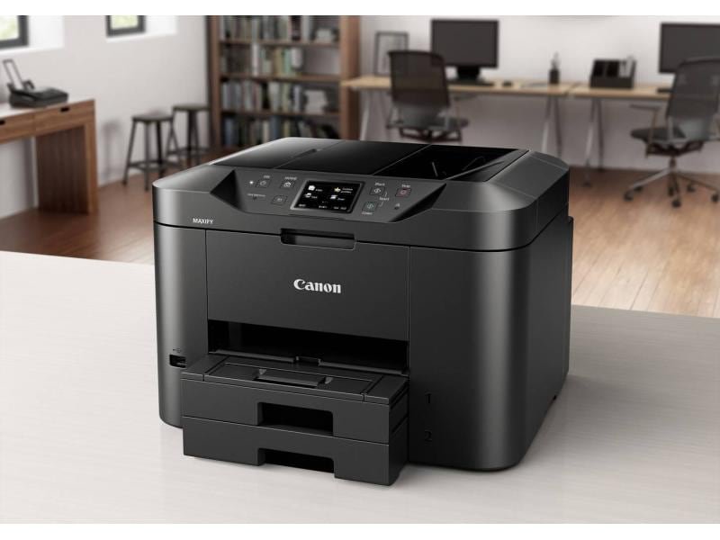 Petites dimensions, large éventail de fonctions et nombreuses options de connectivité : Le Canon Maxify MB2750 peut non seulement imprimer, mais aussi numériser, copier et faxer. Il s’adresse aux utilisateurs exigeants du bureau à domicile qui souhaitent effectuer le plus grand nombre possible de tâches quotidiennes au bureau rapidement et facilement avec le même appareil.
