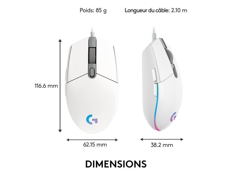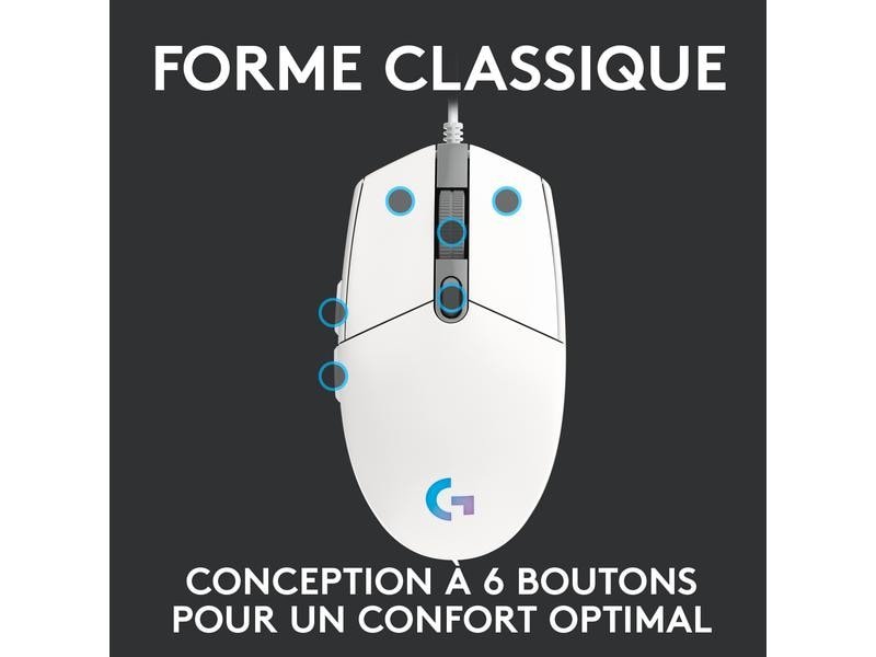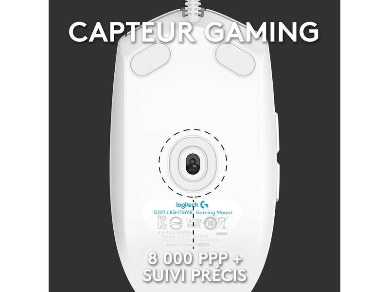 Logitech Souris de gaming G203 Lightsync Blanc