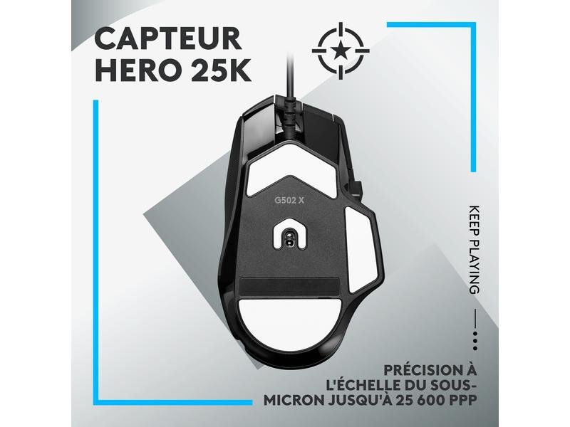 Succédant à la Logitech G502, l’une des souris de jeu les plus populaires au monde, la G502 X a été améliorée et dotée des dernières innovations en matière de technologie de jeu. Parmi celles-ci, les tout nouveaux interrupteurs hybrides optiques et mécaniques «Lightforce» pour une vitesse et une fiabilité incroyables, associés au capteur précis «Hero 25K» pour une précision maximale.