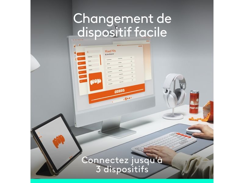 La Logitech POP Mouse est une souris sans fil ludique et silencieuse, spécialement conçue pour que votre personnalité s’exprime pleinement sur votre bureau et ailleurs. La technologie «SilentTouch» garantit un fonctionnement silencieux et sans interférences dans tous les environnements. La «SmartWheel» vous permet en outre de passer de la vitesse à la précision en un clin d’œil et d’être plus productif au travail. La POP Mouse se connecte sans fil via Bluetooth LE à trois appareils au maximum et dispose d’une autonomie de batterie pouvant atteindre 24 mois.