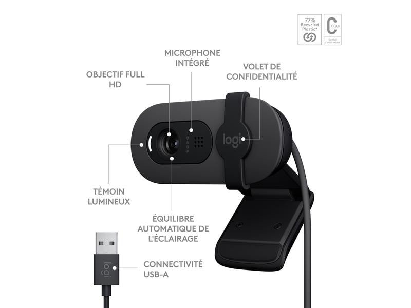 Présentez-vous encore mieux en image et en son avec Brio 100, une webcam simple et abordable, et soyez le meilleur de vous-même lors de vos conversations vidéo. La résolution Full HD 1080p et la correction automatique de l’exposition garantissent la clarté et un éclairage plus lumineux dans vos conversations et vous permettent de vous mettre en valeur. Votre voix est plus clairement audible grâce au microphone intégré et le cache intégré garantit une intimité totale.