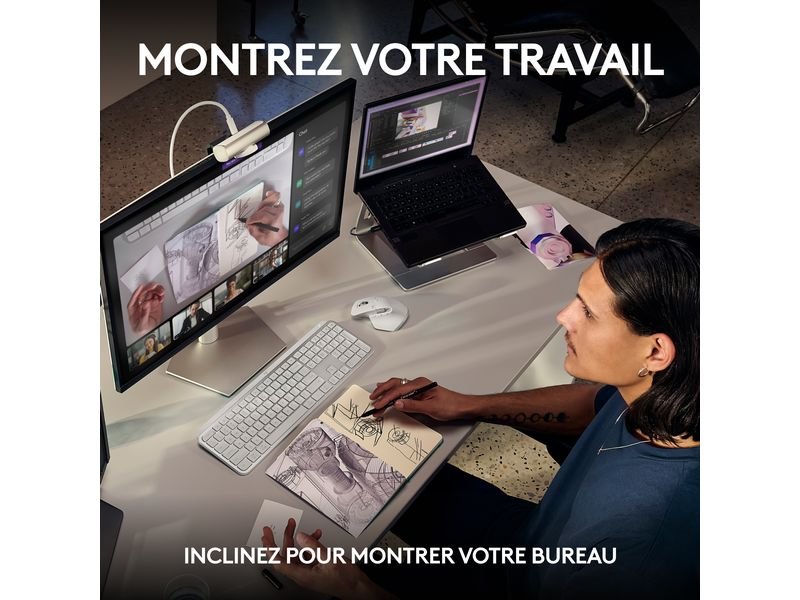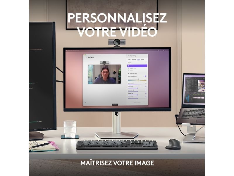 - Options d’ajustement telles que l’exposition, la teinte, la luminosité, le champ de vision et bien plus encore via le logiciel «Logi Options+ ».
